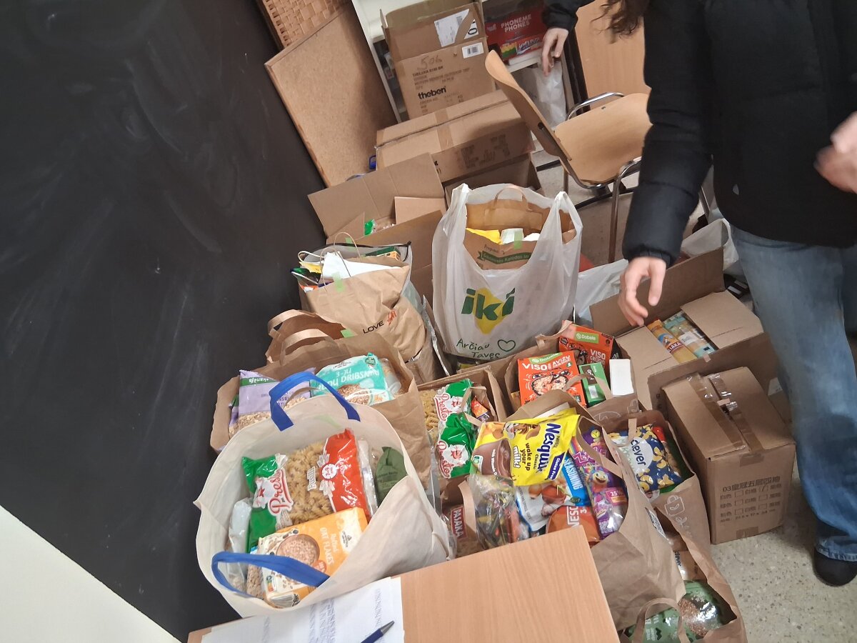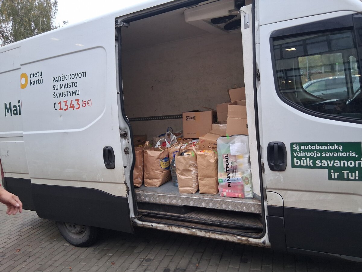 Šiandien mokinių atneštas maistas iškeliauja į „Maisto banko“ skyrių, kur bus išdalintas nepasiturintiems. Labai džiaugiamės, kad mokiniai taip aktyviai įsitraukė į šią akciją ir per savaitę paaukojo kelias dešimtis, o galbūt netgi ir triženklį skaičių kilogramų maisto produktų, kurie šiandien „Maisto banko“ savanorių išvežami tiems, kam jų labiausiai reikia.