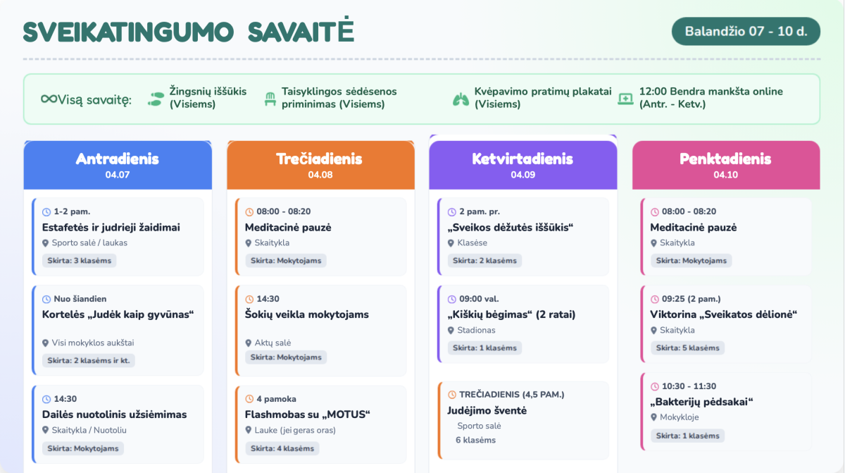 Sveikatingumo savaitė mūsų mokykloje - jau balandžio 7-10 dienomis!