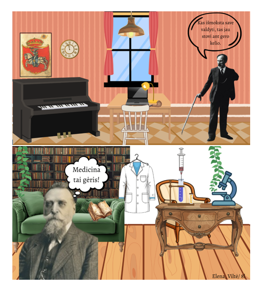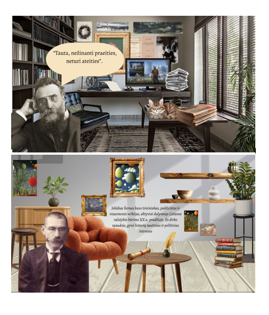 Kurdami skaitmeninį interjerą, mokiniai pirmiausia gilinosi į pasirinkto signataro asmenybę bei jo profesiją: savarankiškai ieškojo informacijos internete, svarstė, kokie daiktai galėtų geriausiai atskleisti jo pomėgius. Ryškindami profesinę veiklą, mokiniai interjeruose naudojo daiktų simbolius. Istorinės asmenybės įkvėpė mokinius kurti savitai ir originaliai.