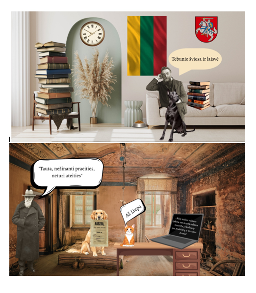 Per dailės pamokas 8-tų klasių mokiniai pabandė tai įsivaizduoti ir sukūrė skaitmeninius koliažus, kuriuose susijungia tai, kas sena ir nauja, o praeities ir dabarties artefaktai persipina tarpusavyje. Signatarų mintys tapo visos tautos savimonės ir pabudimo kelio raktu.