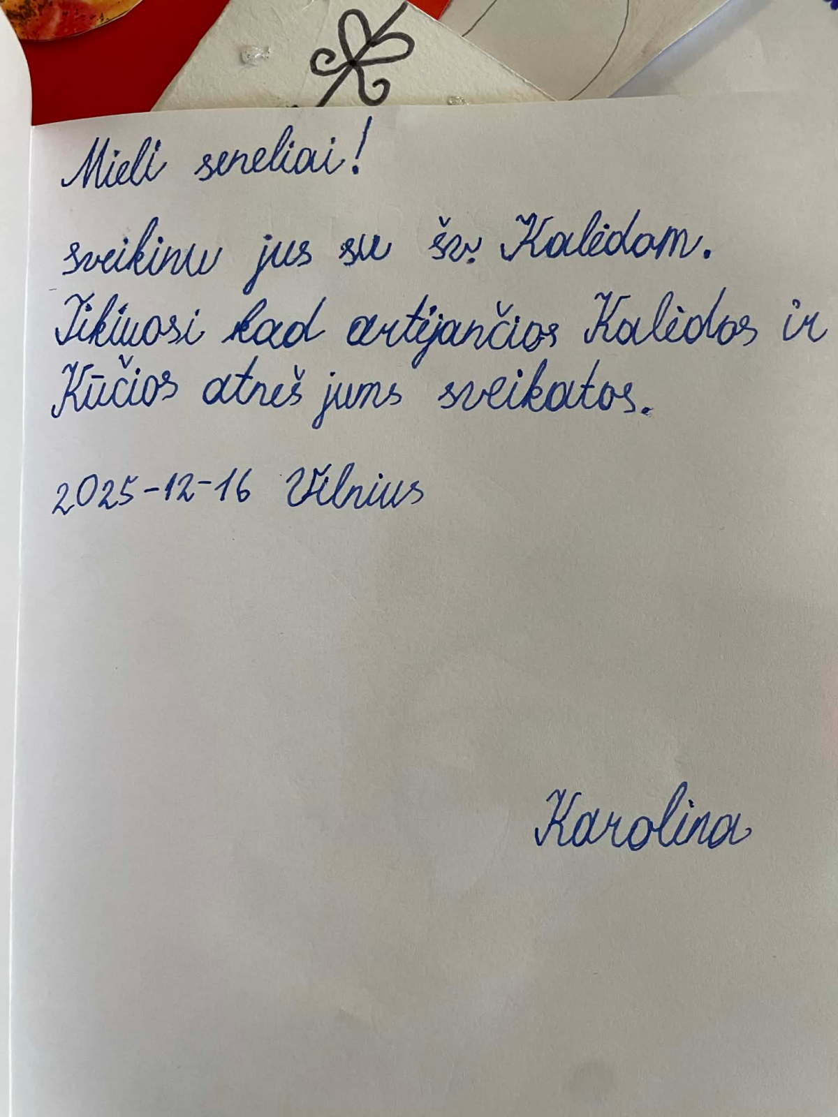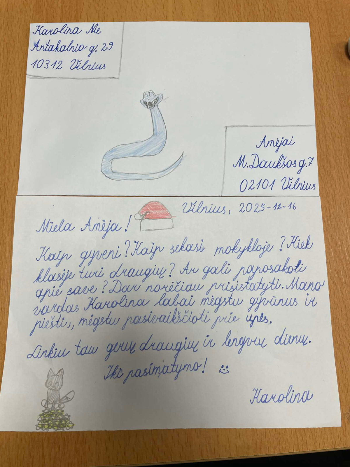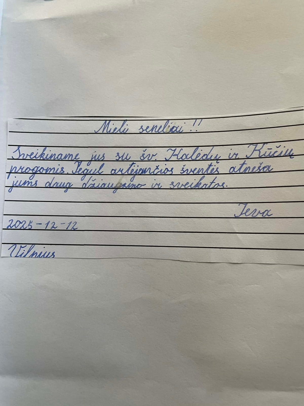 Artėjant šventiniam laikotarpiui, 2 o klasės mokytojas Paulius inicijavo tęstinę kalėdinę akciją, kuri buvo pradėta praėjusiais metais. Šios iniciatyvos tikslas – suteikti džiaugsmo ir šilumos senjorams, gyvenantiems globos namuose.