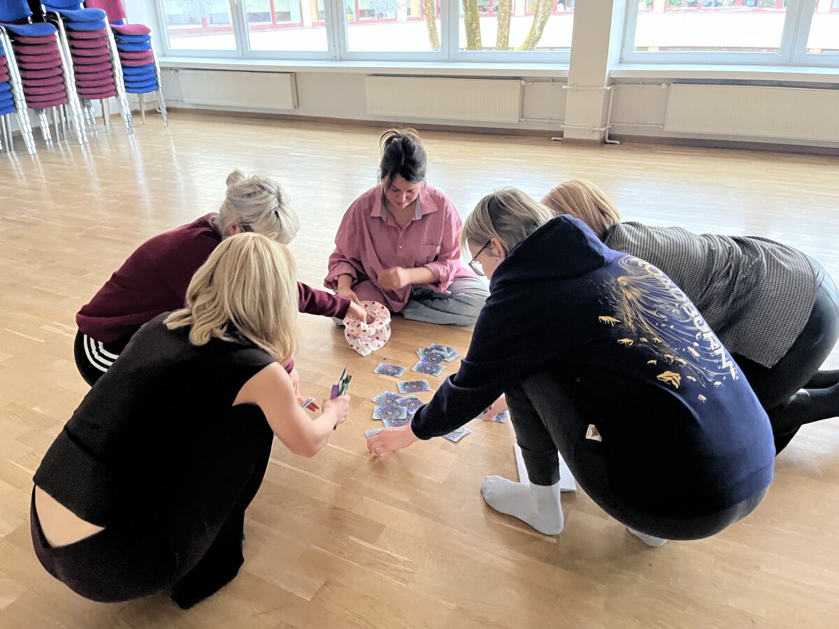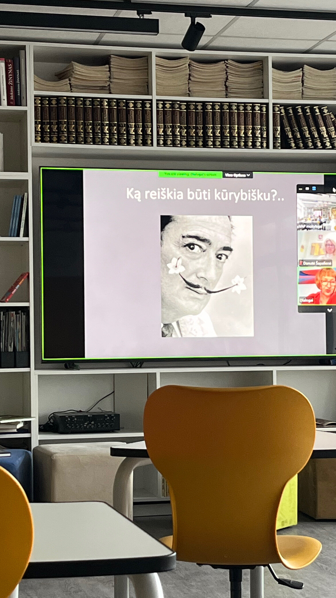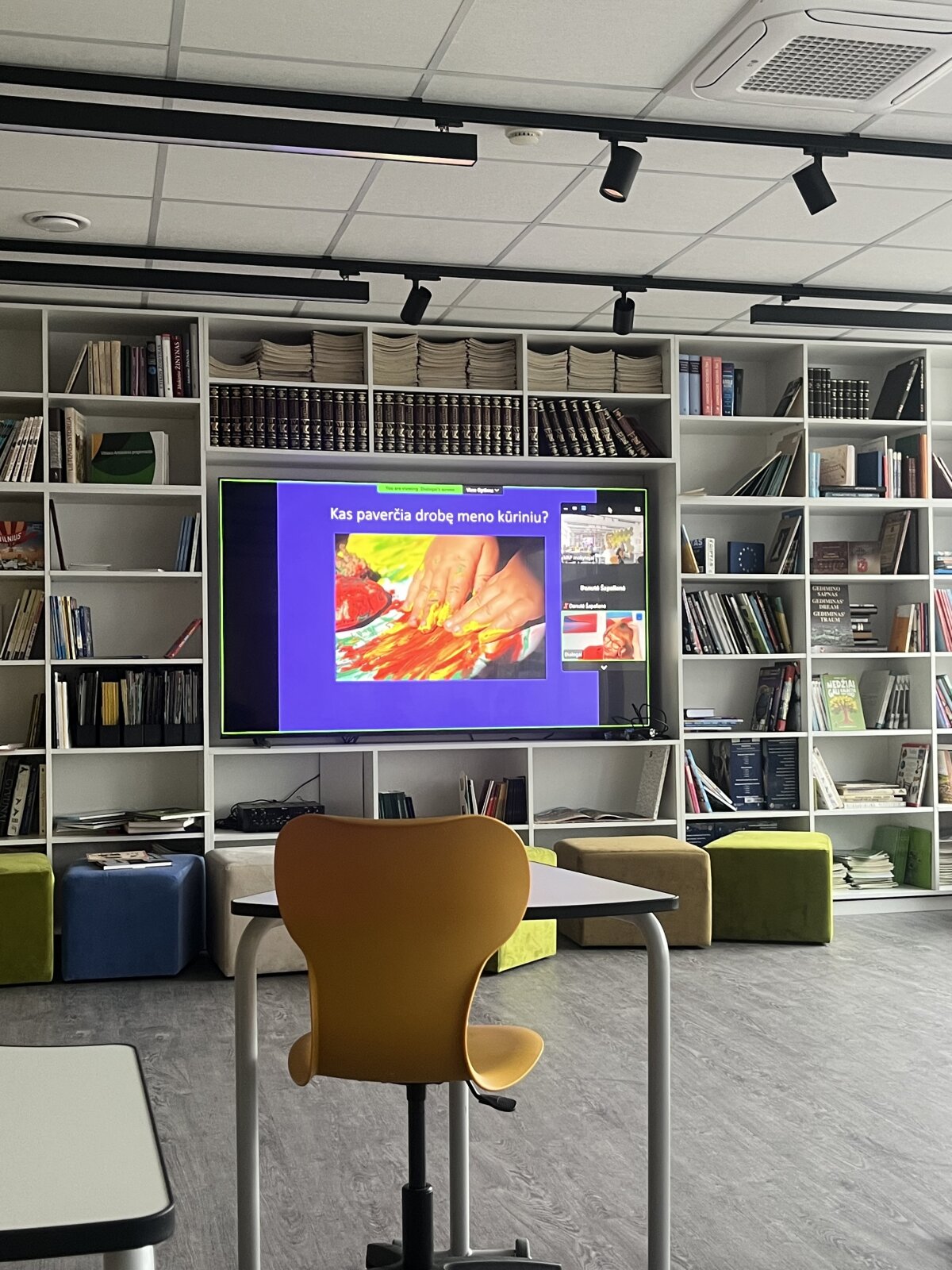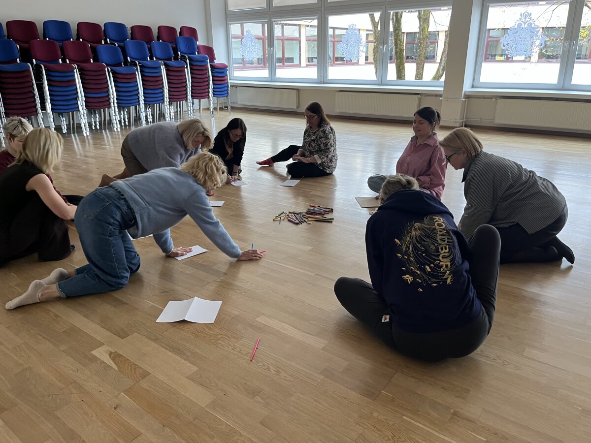 Dailės terapijos užsiėmimui, diskusijai apie meną ir praktiniam pasibandymui mokytojus pakvietė profesionali tapytoja, meno pedagogė Edita Rakauskaitė. Šilto susitikimo metu buvo progos ir pabendrauti, pasikalbėti įvairiais klausimais meno ir pedagogikos temomis, ir atlikti kūrybinių užduočių.