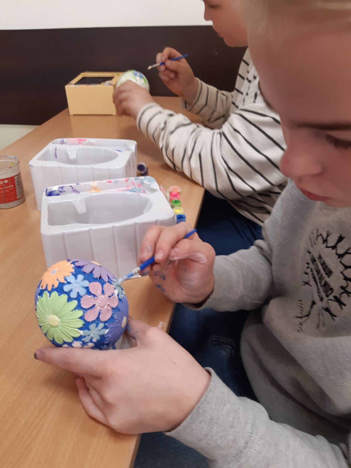 Vaikai kūrybiškai ir drąsiai eksperimentavo su spalvomis ir raštais, ieškodami savito stiliaus, o rami ir telkianti veikla, skambant švelniai muzikai, padėjo susikaupti bei pajusti artėjančių švenčių - šv. Velykų džiaugsmą.